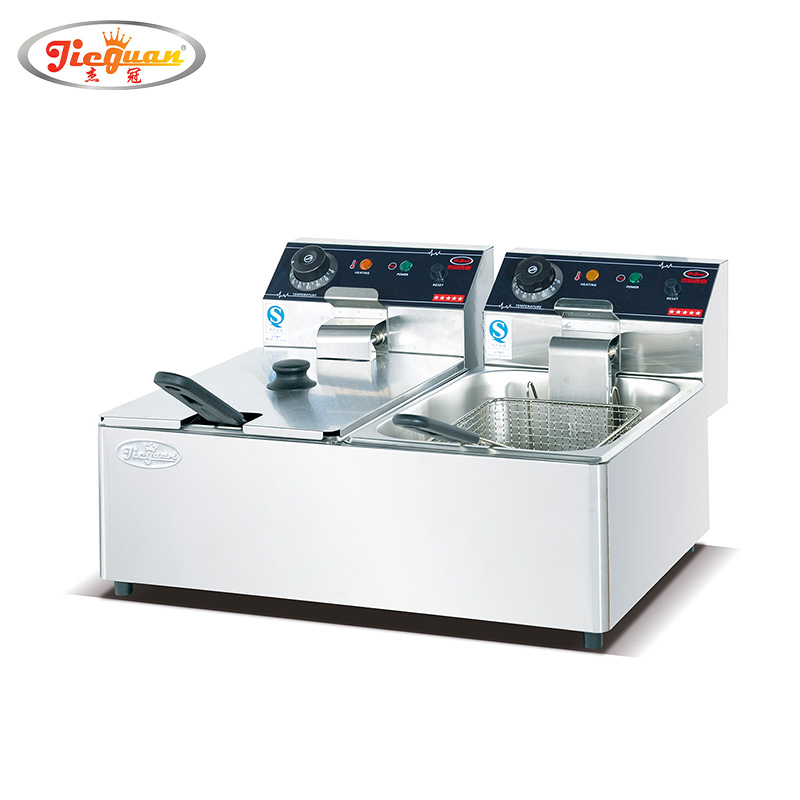 Une friteuse commerciale à double réservoir est un système à huile chaude à deux chambres . Il permet un service plus rapide et une meilleure séparation des produits.